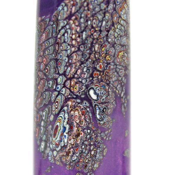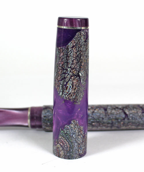 This Homerton fountain pen is made from Fordite, Lavender Pearl Kirinite for the lining, threads and section.