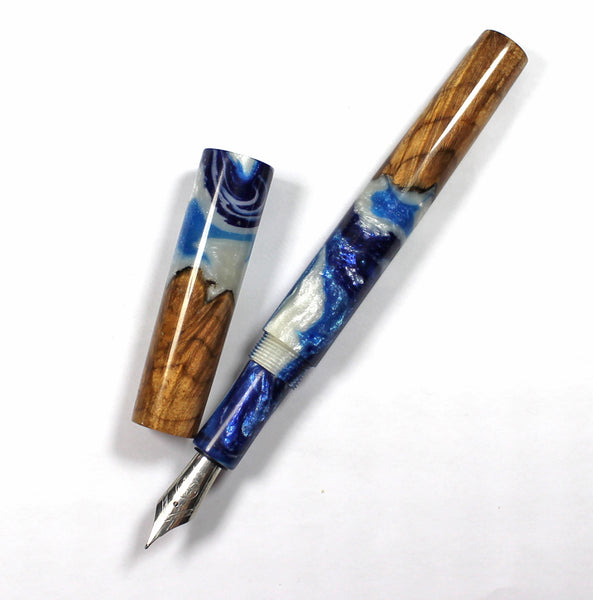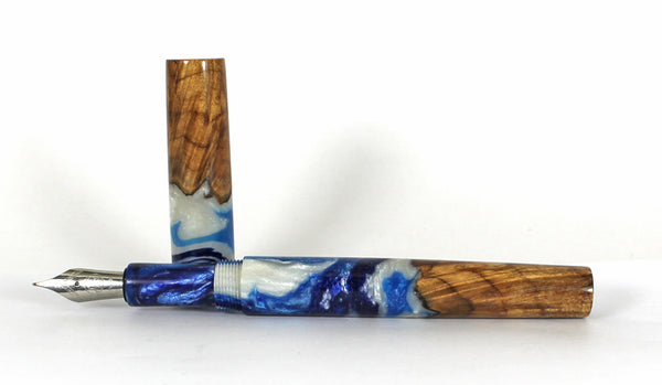 Handmade Fountain pen made from a resin and Big Leaf Maple Burl.