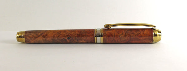 Queens Fountain pen dressed in Indonesian Amboyna Burl