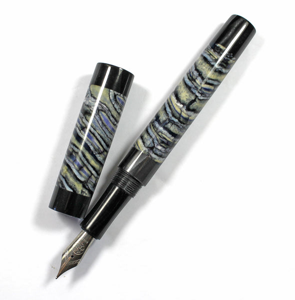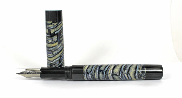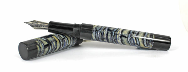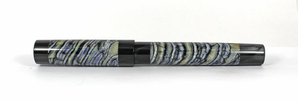This Grand Homerton fountain pen is made from Woolly Mammoth Molar / Tooth & Black Pearl Kirinye for the lining, threads and section.